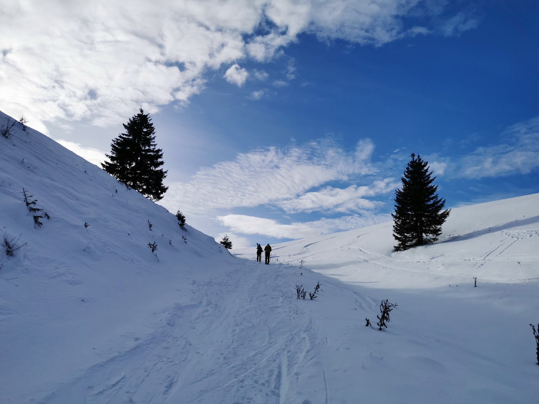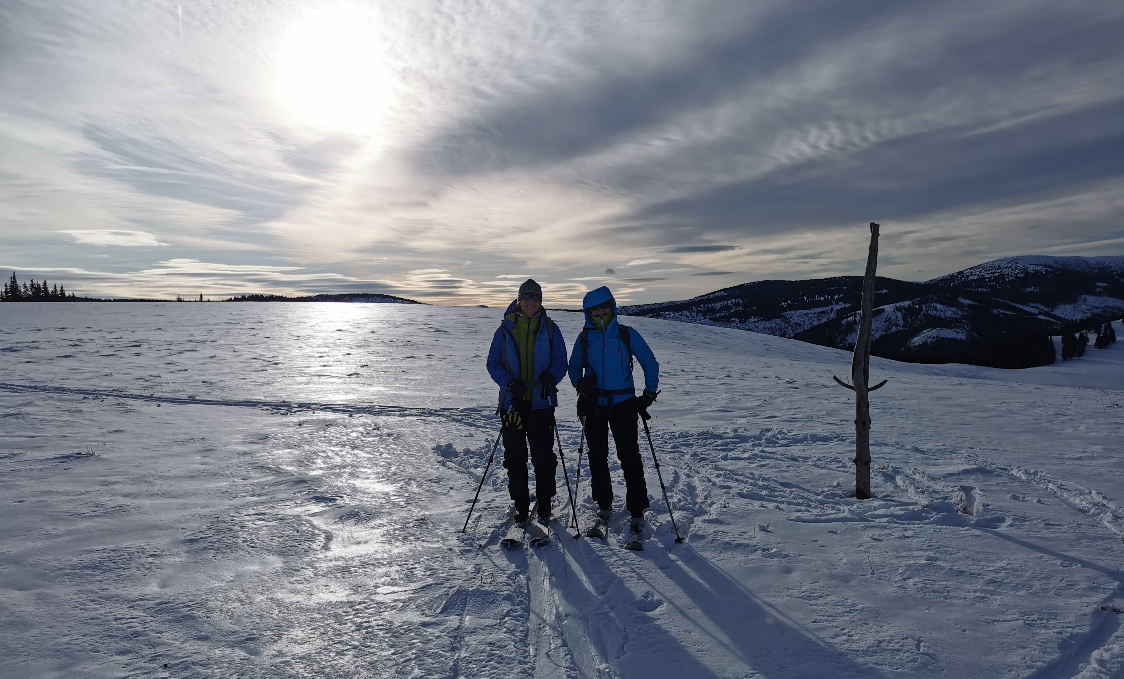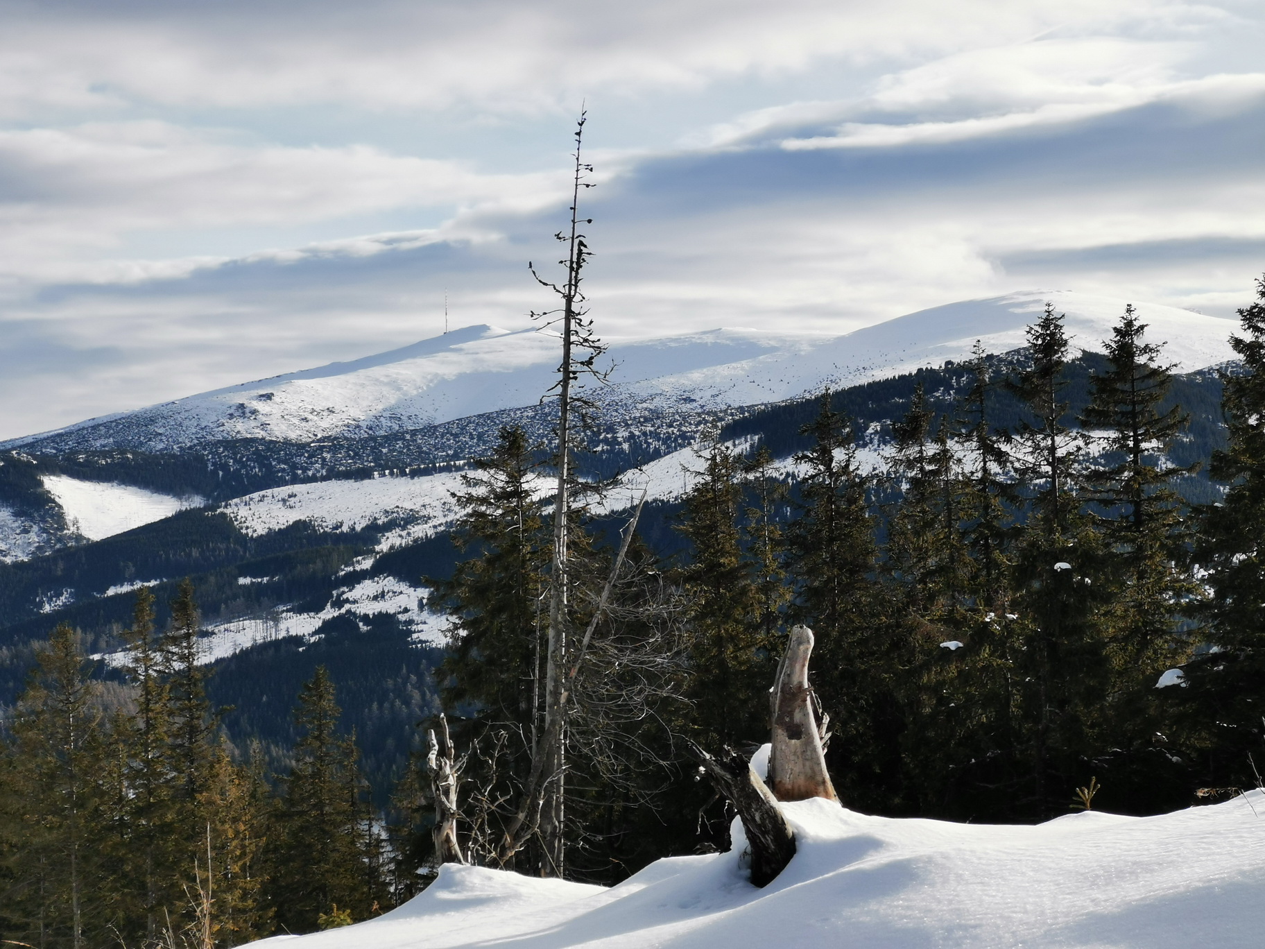Dnes už sa v Liptovskej Tepličke konečne lyžuje opäť, dokonca na dvoch miestach v od seba nezávislých strediskách. My sa ale nejdeme lyžovať na vlekoch, parkujeme začiatkom zimy na veľkom parkovisku pod lyž. strediskom Smrečiny s cieľom zašlapať si na prvom snehu zimy. December začína dobre a tak šlapeme popod lyžiarsky svah známou cestou vedúcu hore na lúky pod Panskou hoľou. Cesta vedie lesom dolinkou zarezanou v severnom svahu a tak snehu sa tu darí už začiatkom zimy.