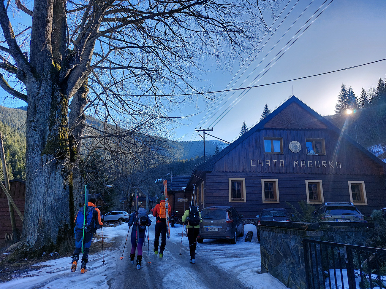 Krásna „jarná“ sobota, posledný deň februára. V kotlinách a dolinách ráno primrznutô a snehu už dávno „nula celá nič“, to isté v tej hlbokej cestou z Partizánskej Ľupče na Magurku. Len medzi chalupami na Magurke trošku ľadu, ale dalo sa v pohode. Na kopcoch nad Litovskou Lúžnou už nad nulou a obloha čistomodrá. Okolo ôsmej sme parkovali v pohode kúsok pod chatou Magurka, vyniesli lyže na chrbtoch kúsok nad odbočku zelenej značky v spodnej časti Viedenky a už sme pásovali proti prúdu potoka: po vyšmýkanom, zatiaľ zamrznutom, šírkovo aj na zjazdenie dostatočnom. No pri tých teplotách a masách ľudí, čo sa tadeto každé popoludnie dole šmýkajú, už to tam dlho nevydrží. Občas kamienky trčali. Vyššie brod cez potok a doľava, do serpentíny lesom - tam už to bolo snehovo oveľa pozitívnešie.