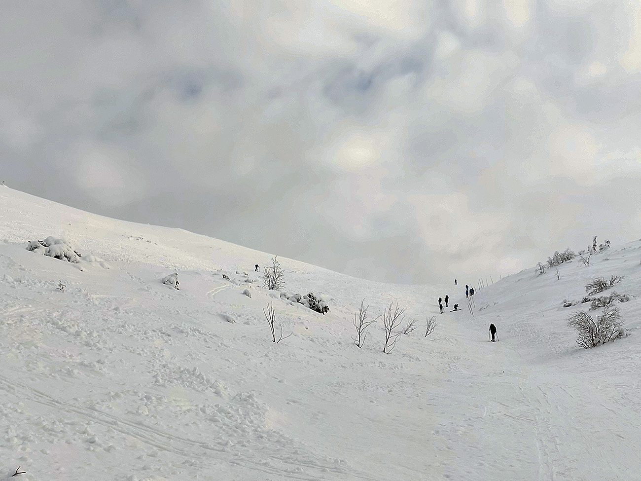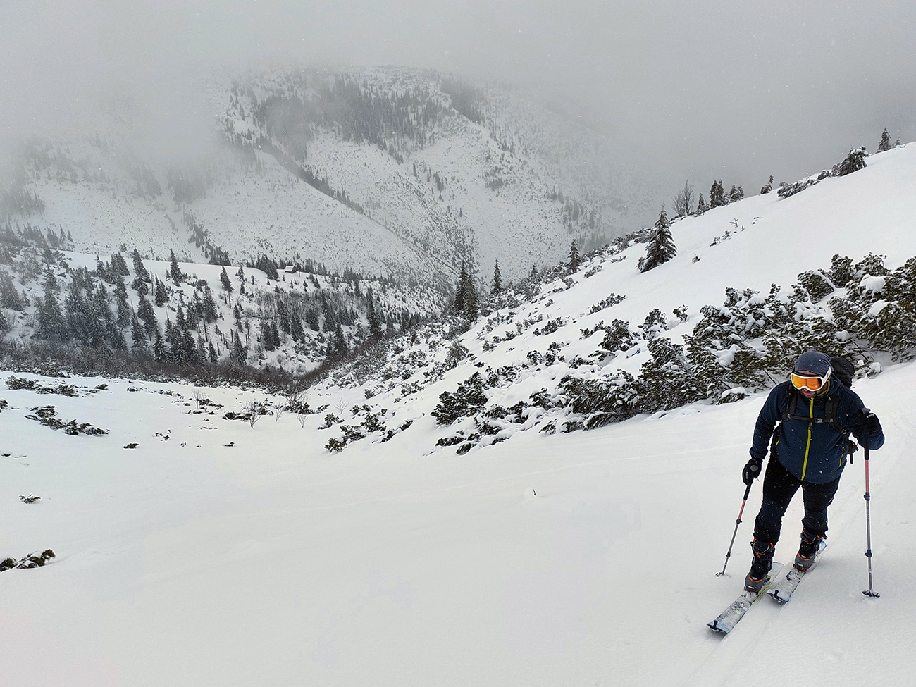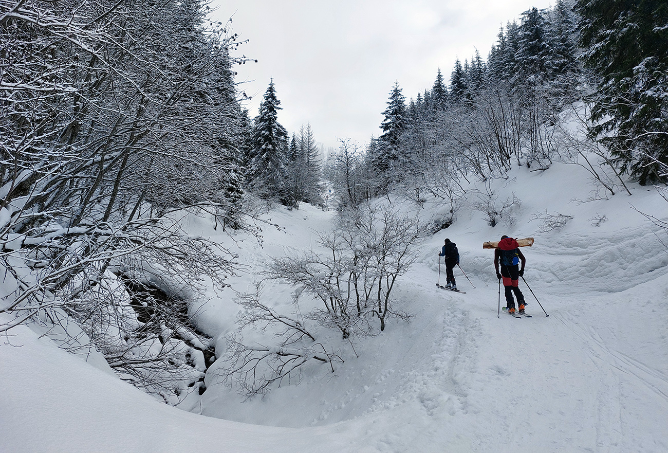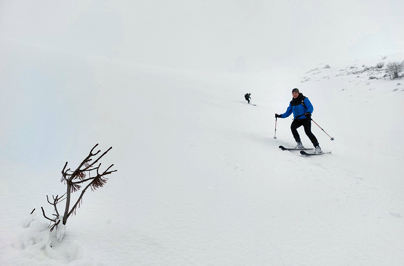 Tak sme smerom dole triafali len od tyče k tyči, ale prekvapivo dobrá lyžba. Po rozchodenom, ale rovnom. A keď sme si už trúfli vrhnúť sa doprava, trafili sme také dobré sňahy, že sa aj ujúkanie ozvalo.