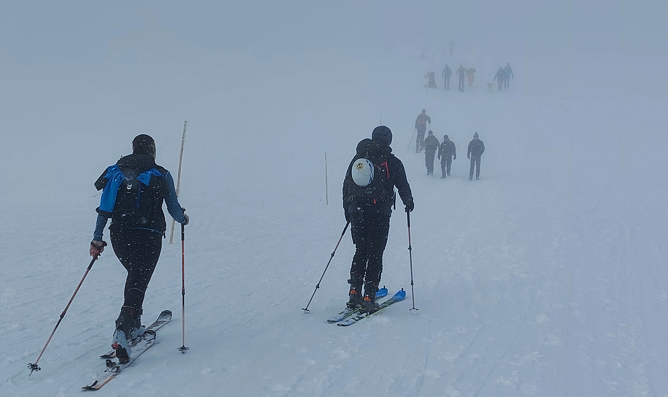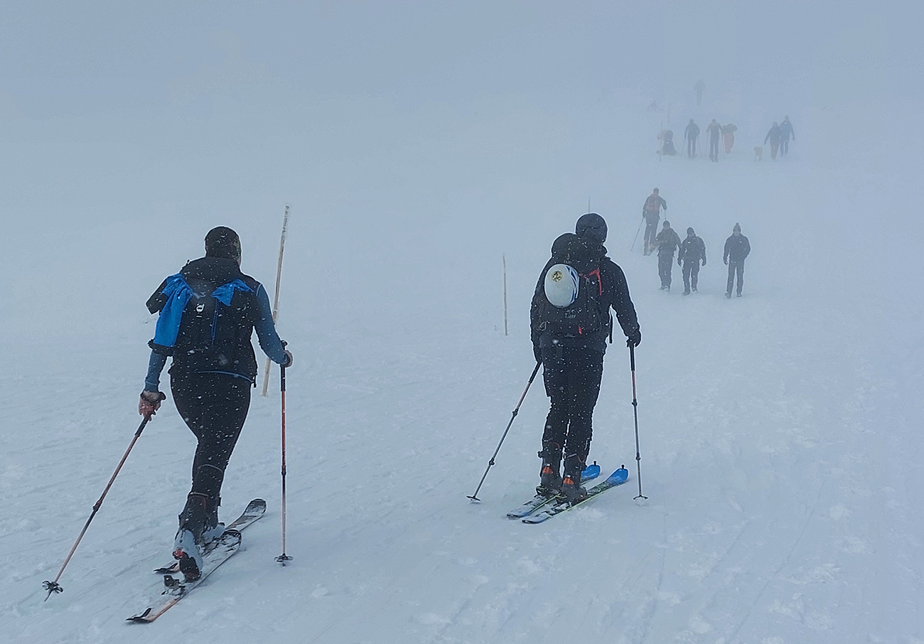 Prišla neodolateľná ponuka, že Ďumbier z Trangošky je istota! Ale že len v nedeľu, lebo v sobotu bude hnusne. Bolo síce aj v nedeľu, keď sa Červený Šíp za vytrvalého sprchovania bystro driapal hore dolinou, ale keď ulovil predposledné miesto na zákrute, tak bolo všetko oukej, lebo sporivá slovenská dušička od radosti zapišťala, že nemusí platiť parkovné. A skočila lyžiarkami rovno do poštrkovanej mláky pod Zázvorom. Ale od Zázvoru už sa dalo! Skoro ako od parkoviska, a to sa teraz cení! Pásy začvachtali v mokrom firne, zaradili sa do šóry podobne postihnutých a išlo sa. A neveriacky sa krútilo hlavami, koľké snehy tam všade naokolo ležia. A prestalo aj chčať, zato začalo nebyť vidno, tak výhľady len do spodných partií známych podďumbierskych zjazdoviek vlčej a Halašovej a ktovie ako sa to tam všetko volá. Ale že to sa cestou nazad isto zlepší.
