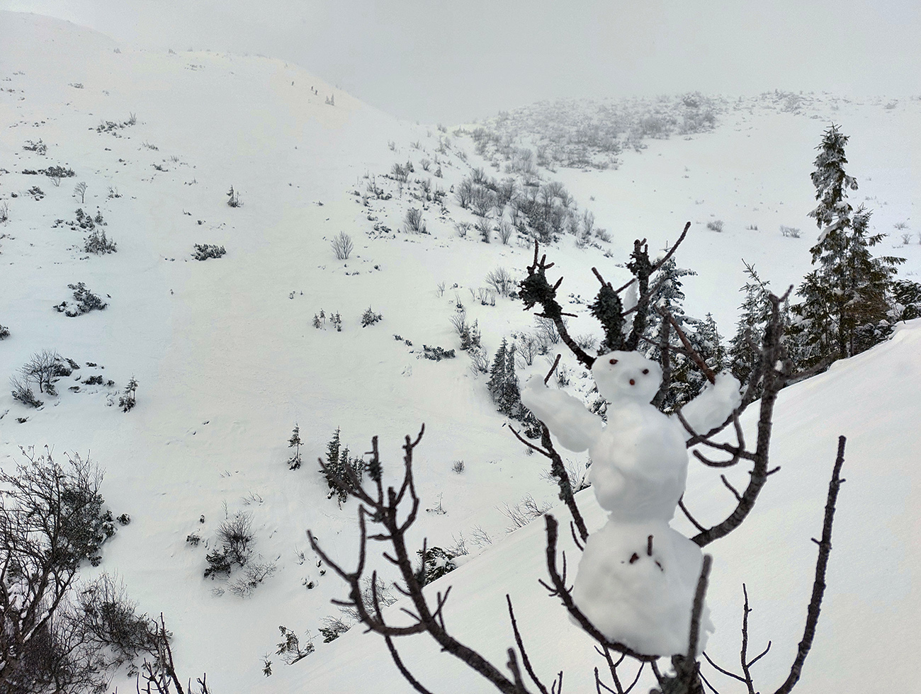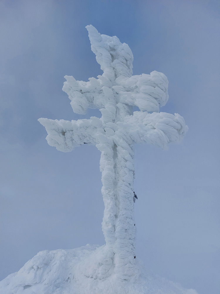 Hore sme si užili neviditeľnosť ako sa patrí, kríž skoro len z diaľky, lebo takmer nebolo kam zaparkovať – buď davy všade rozložené, alebo žltý sneh. Nechápem, kde sa potom po fejsbúkoch vzali tie komentáre typu „dobre sme polyžovali, lebo bolo dobre vidno“.