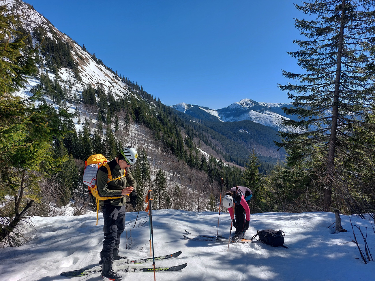 Ešte sme vyťapkali na Poľanu a nažhavení na jarné firny sme to odtiaľ stočili priamo dole po pláňach, niekam až tesne nad Vajskovský vodopád. Firny exkluzívne – na pevnom podklade natopená taká akurátna vrstvička, vôbec sa to ani v nižších polohách neborilo. Pre veľký úspech sme si to dali aj druhý raz, to už ale slnko dávalo poriadne cítiť svoju silu.